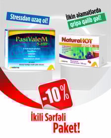 Stressdən uzaq olmaq üçün qida əlavəsi Asfarma Pasivalem 30 həb + Qripin ilkin əlamətləri üçün qida əlavəsi Asfarma Naturahot 12 paket |