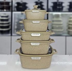 10 Parça Qazan və Tava Dəsti/Krem/Life Smile
