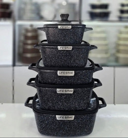 10 Parça Qazan və Tava Dəsti/Qara/Life Smile |