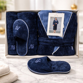 Kişilər üçün hamam xələti + dəsmallar və tərlik HB-5886, bambuk, göy, ölçü L-XL |