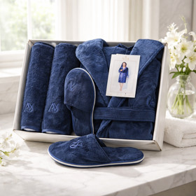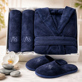 Kişilər üçün hamam xələti + dəsmallar və tərlik HB-9643, bambuk, göy, ölçü L-XL |
