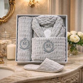 Kişilər üçün hamam xələti + dəsmal və tərlik HB-8031, mikrofiber, boz, ölçü One size |