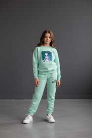 Qızlar üçün şalvarlı dəst 93843210, pambıq, firuzəyi, 12-13 yaş |