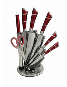 Bıçaq dəsti 4790, nikel/paslanmayan polad, qırmızı/gümüşü, 25/30/45 sm, 9 əd |