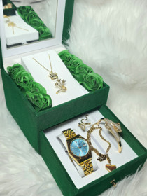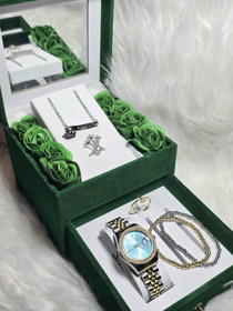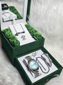 Qadınlar üçün hədiyyə dəsti EA084r (qol saatı + üzüklər + qolbaqlar + boyunbağı), paslanmayan polad |