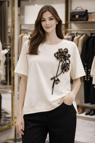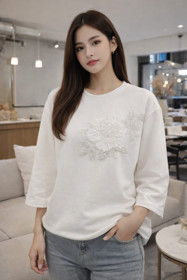 Qısaqol bluz qadınlar üçün KB-0702, ağ, pambıq, ölçü One size |