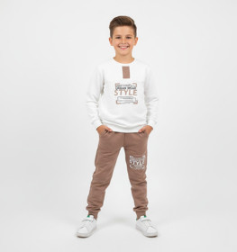 Oğlanlar üçün şalvarlı dəst 86576355, pambıq, ağ/bej, 8 yaş |