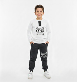 Oğlanlar üçün şalvarlı dəst 86576355, pambıq, ağ/qara, 8 yaş |