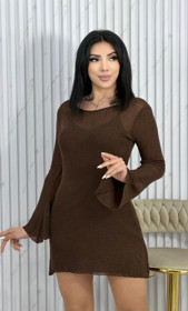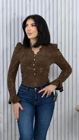 Qadınlar üçün uzunqol bluz LM-3151, güpür, qəhvəyi, ölçü One size |