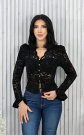Qadınlar üçün uzunqol bluz LM-3151, güpür, qara, ölçü One size |