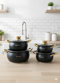 Qazan dəsti HausRoland Kahn shop030138, 8 əd, 16/18/20/24 sm, paslanmayan polad, qapaqla, qara/qızılı - Kahn shop030138 |