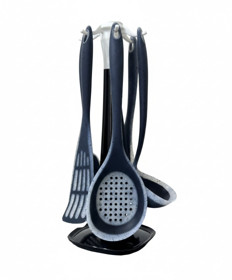 Aşpaz kürəkləri, qaşıqlar, çəngəllər Kahn shop030135 mətbəx ləvazimatları dəsti, 7 ədəd, altlıq ilə, silikon, göy - Kahn shop030135 |