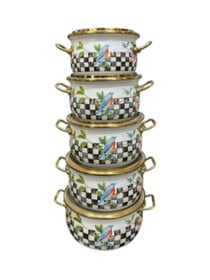 Qazan dəsti YM-7562002, mina, 16/18/20/22/24 sm, ağ emallı gövdə, qızılı kənar və qulplar, düz qapaqlı - YM-7562002