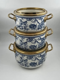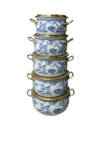 Qazan dəsti YM-7562007, mina, Göy-Ağ Çiçəkli, 16/18/20/22/24 sm, klassik "Gzhel" üslubunda, ağ fonda mavi çiçək naxışlı, qızılı metal detallar ilə - YM-7562007