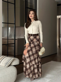 Qadınlar üçün uzun ətək FF22-0602, poliester, qəhvəyi/ağ, ölçü One size |