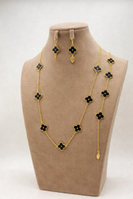 Bijuteriya dəsti 1402-26 boyunbağı və qolbaq sırğa, qızılı/qara |