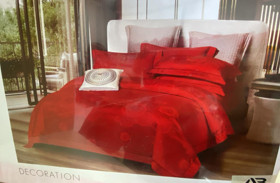 Yataq dəsti 3965, yorğan üzü 200x230 sm, mələfə 240x250 sm, yastıq üzü 48x74 sm 4 əd, ailəvi, atlas, qırmızı |