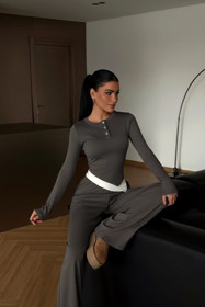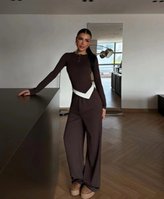 Qadınlar üçün şalvarlı dəst FF32-0602, qəhvəyi, pambıq/elastan, ölçü One Size |