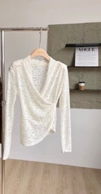 Qadınlar üçün uzunqol bluz FF14-0602, ağ, güpür, ölçü One size |