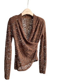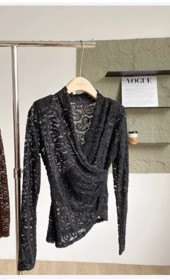 Qadınlar üçün uzunqol bluz FF14-0602, qara, güpür, ölçü One size |
