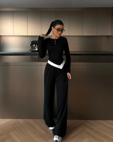 Qadınlar üçün şalvarlı dəst FF32-0602, qara, pambıq/elastan, ölçü One Size |