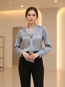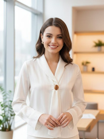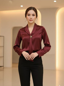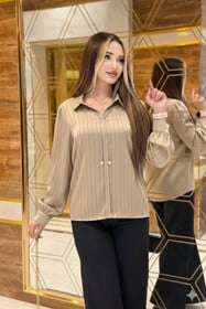 Uzunqol bluz qadınlar üçün EL18-0602, tünd bej, satin, ölçü One size |