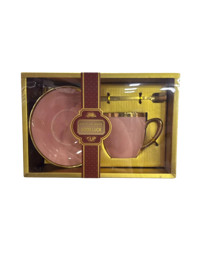 Fincan və nəlbəki dəsti DR_2026, qaşıqla, 250 ml, çəhrayı |
