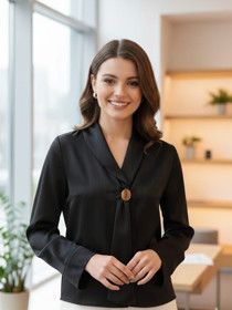 Uzunqol bluz qadınlar üçün EL17-0602, qara, şifon, ölçü One size |
