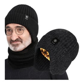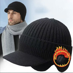 Kişilər üçün qış papağı qulaqlı Qsts, trikotaj, qara |