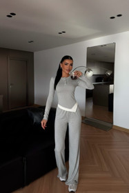 Qadınlar üçün şalvarlı dəst FF32-0602, boz, pambıq/elastan, ölçü One Size |