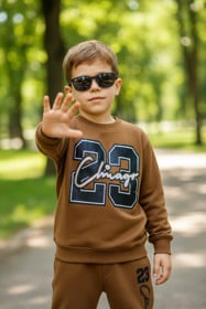 Şalvarlı dəst oğlanlar üçün, qəhvəyi, pambıq/iki iplik, ölçü10-12 yaş |
