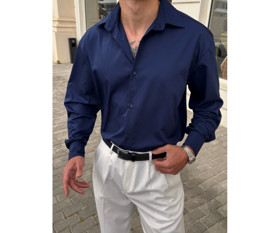 Kişilər üçün uzunqol köynək 50968136, mavi, atlas, ölçü S |