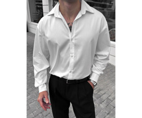 Kişilər üçün uzunqol köynək 65275447, ağ, atlas, ölçü S |