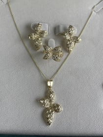 Bijuteriya dəsti kulonlu zəncir, sırğa və üzük, metal |