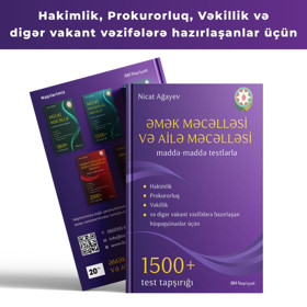 Kitab Əmək Və Ailə Məcəlləsi 1500 Test Tapşırığı 2026, müəllif Nicat Ağayev