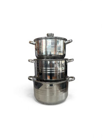 Qazan dəsti Haus Roland 108-3, 6 əd, 24/26/28 sm, 5/7/9 l, paslanmayan polad, nikel, qapaqla, alman brendi - ZGH_00860 |