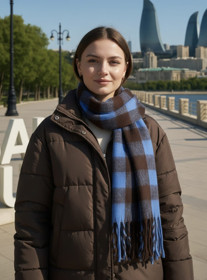 Qadın üçün yeni model göy rəng kəşmir şərf |