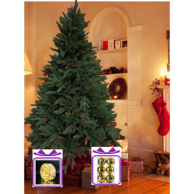 Yeni il üçün şam ağacı 214-RAX008-N1-13, tünd yaşıl, 180 sm + Led çələng 20 m + Oyuncaq dəsti, qızılı, 5 sm, 32 əd Hədiyyə |