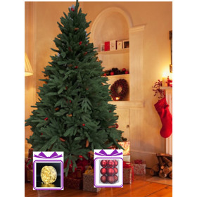 Yeni il üçün şam ağacı 213-RAX008-N1-13, tünd yaşıl, 180 sm + Led çələng 20 m + Oyuncaq dəsti, qırmızı, 5 sm, 32 əd Hədiyyə |