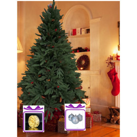 Yeni il üçün şam ağacı 215-RAX008-N1-13, tünd yaşıl, 180 sm + Led çələng 20 m + Oyuncaq dəsti, gümüşü, 5 sm, 32 əd Hədiyyə |