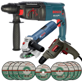 Elektrik Alət Dəsti Perforator Bosch GBH 2-26 Künclü cilalama maşını Bosch GWS Drel Kzubr 10x Disk AV-122112 |