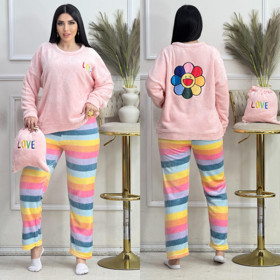 Qadınlar üçün şalvarlı ev kostyumu nm012, çəhrayı, peluş, ölçü One size |