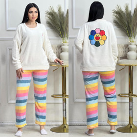 Qadınlar üçün şalvarlı ev kostyumu nm012, ağ, peluş, ölçü One size |