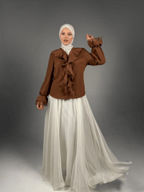 Köynək-bluzka 9279, qəhvəyi, atlas, ölçü XL |